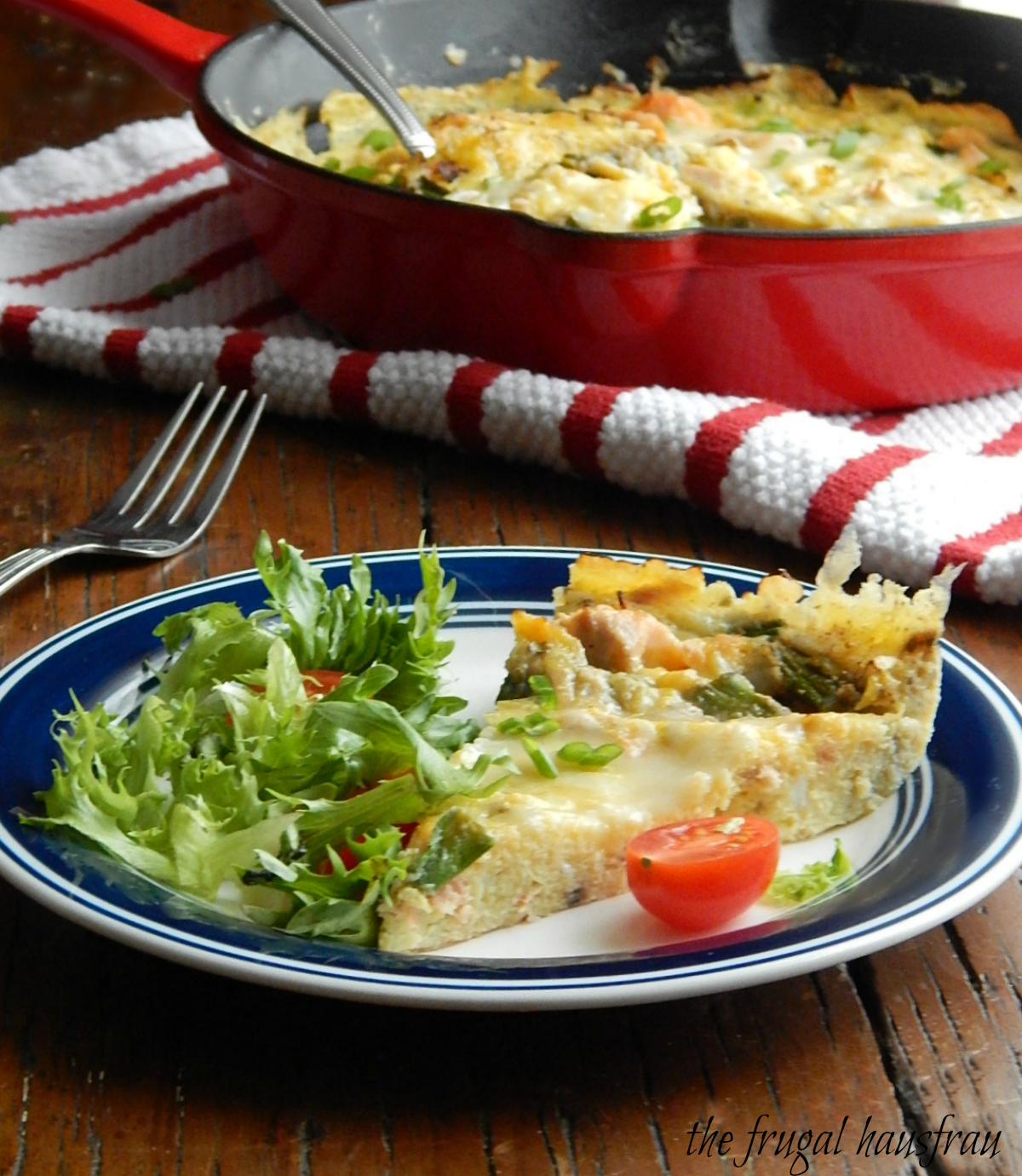 While most frittatas are pretty inexpensive, with careful shopping, this one was downright cheap. Serving it with a simple salad dressed it up beautifully. Hash Browns, like these Baked Potato Hash Browns, would never be inappropriate, either.