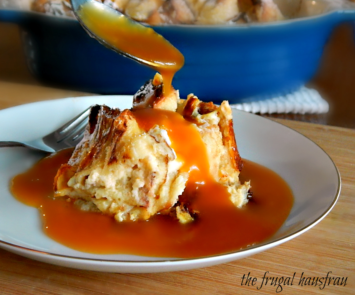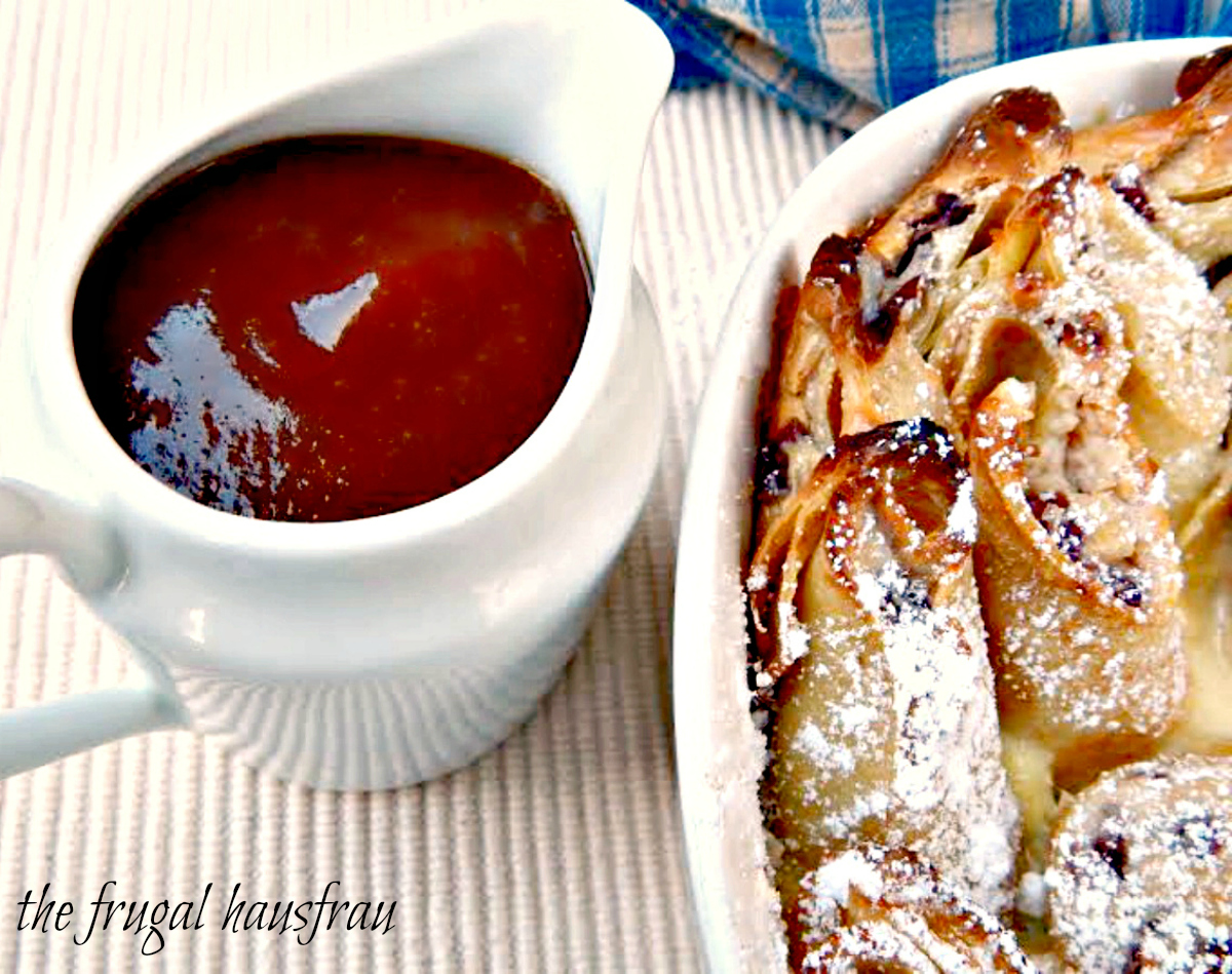 On the table now, just being dusted with powdered sugar as the clink of plates and silverware and warm conversation fill the room. Crispy, golden brown peaks jut out above the pool of creamy custard sauce, and the warmed Caramel Apricot Sauce sits to the side to be passed and drizzled over all.