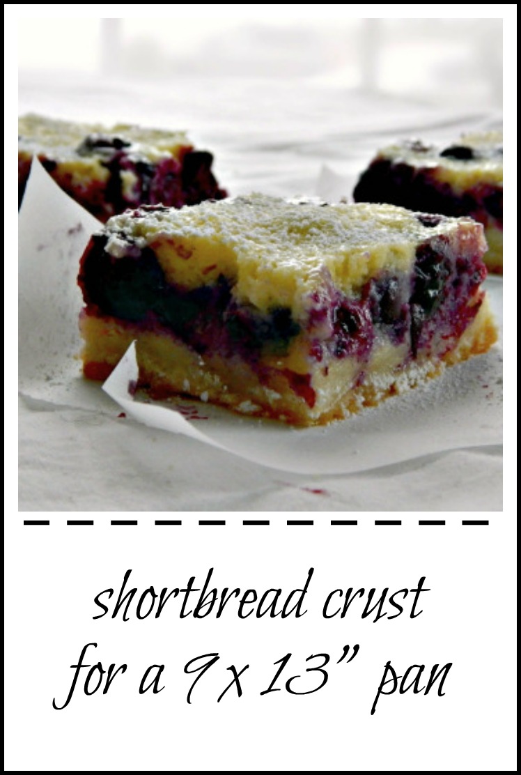 “But what that all has to do with Shortbread Crust?” you might ask, as I ramble on. Well, it’s because Blueberry Custard Pie Bars don’t use pie crust, they’re built on a shortbread crust.