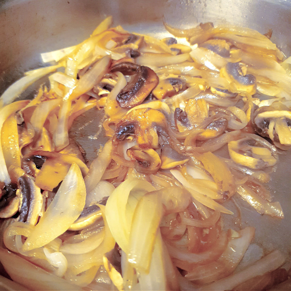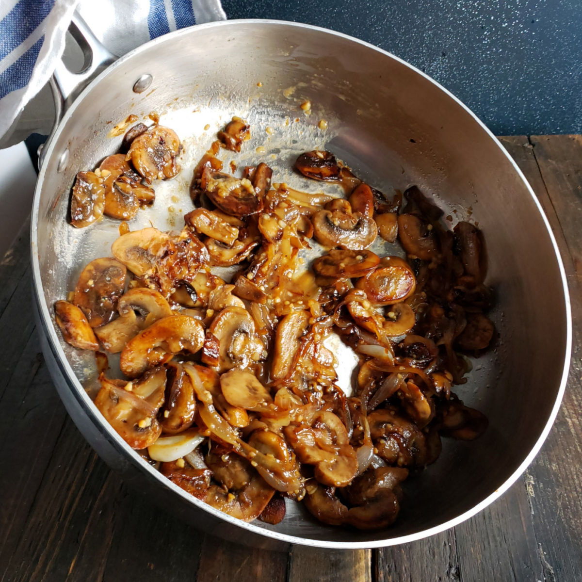 First, the mushrooms and onions have to be prepared so pay attention! 🙂 I have a special method that speeds things along and works beautifully.