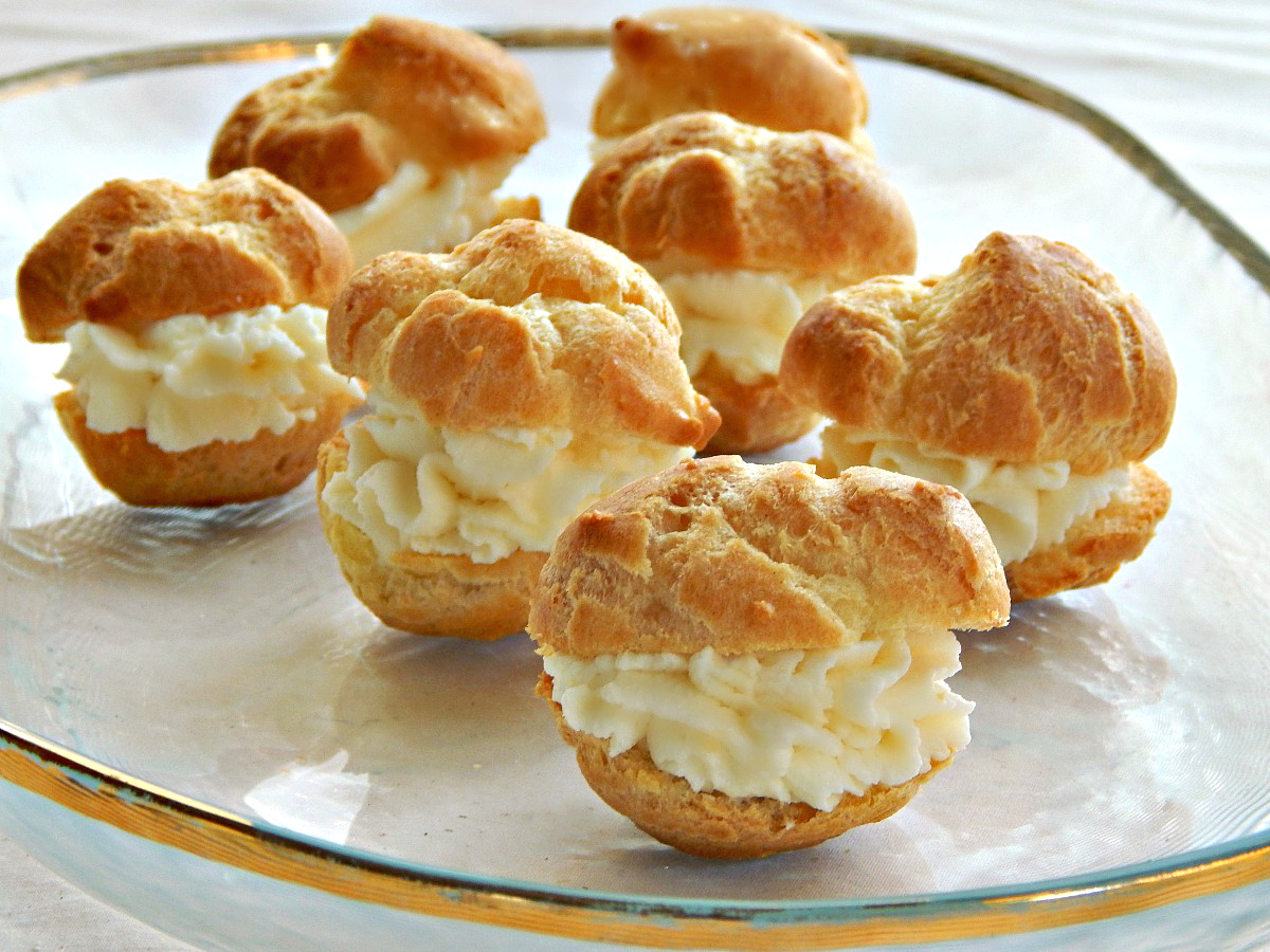If there was ever a frugal “cheat” of a dessert, Profiteroles, or Cream Puffs, as they are often called, have to be it. Easy to make, requiring no special equipment, although a piping bag & tip is nice, inexpensive, and make ahead. And once made, they can be filled & topped with all kinds of deliciousness. What more could one want?