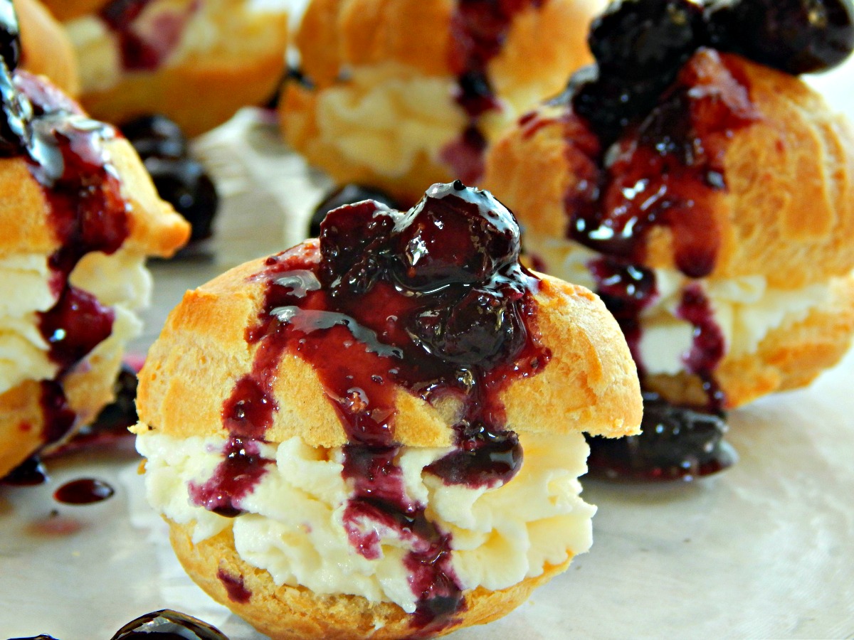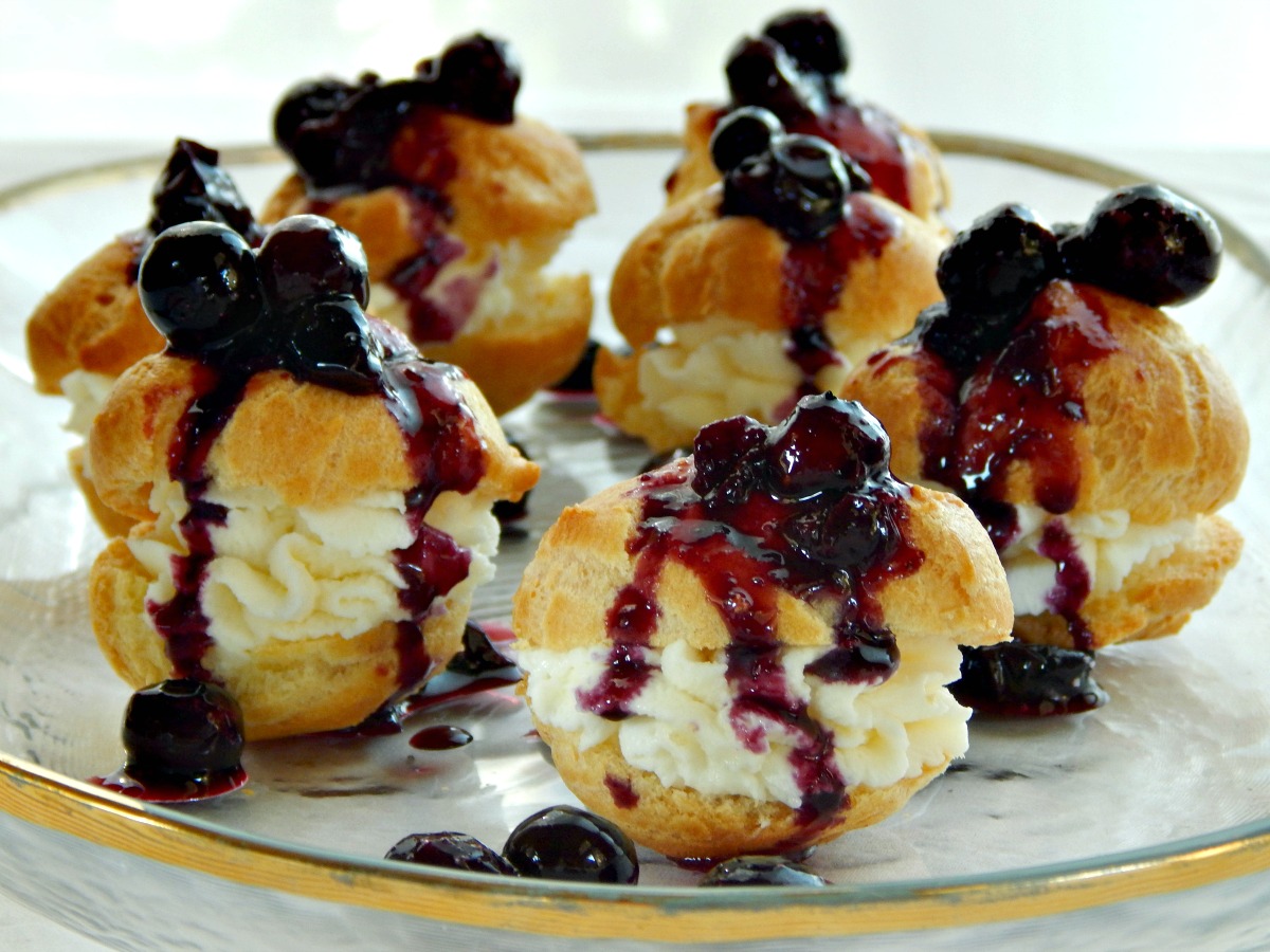 Cream Puffs with Mascarpone Filling & Blueberry Compote