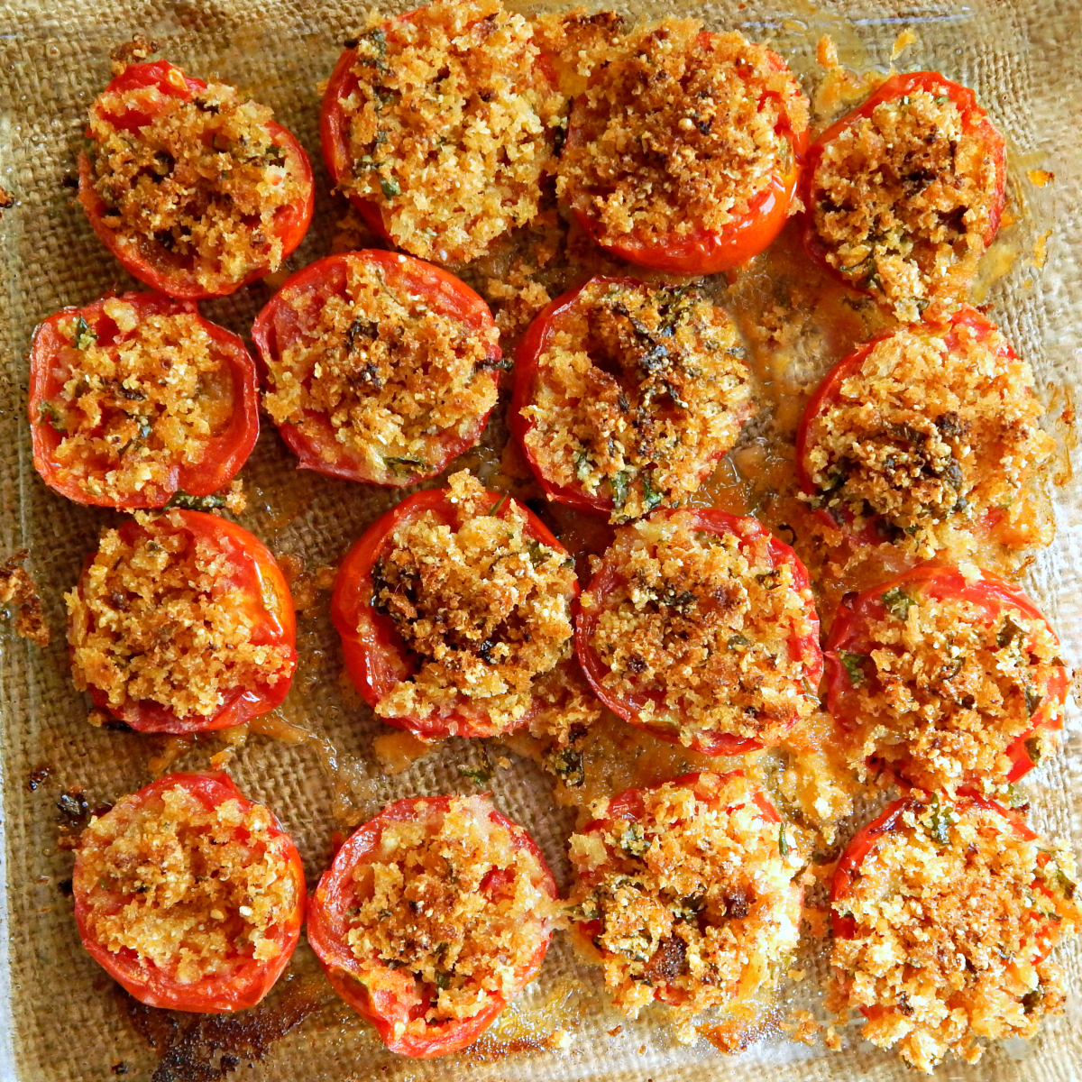 Baked Tomatoes with Garlicky Breadcrumb Crust