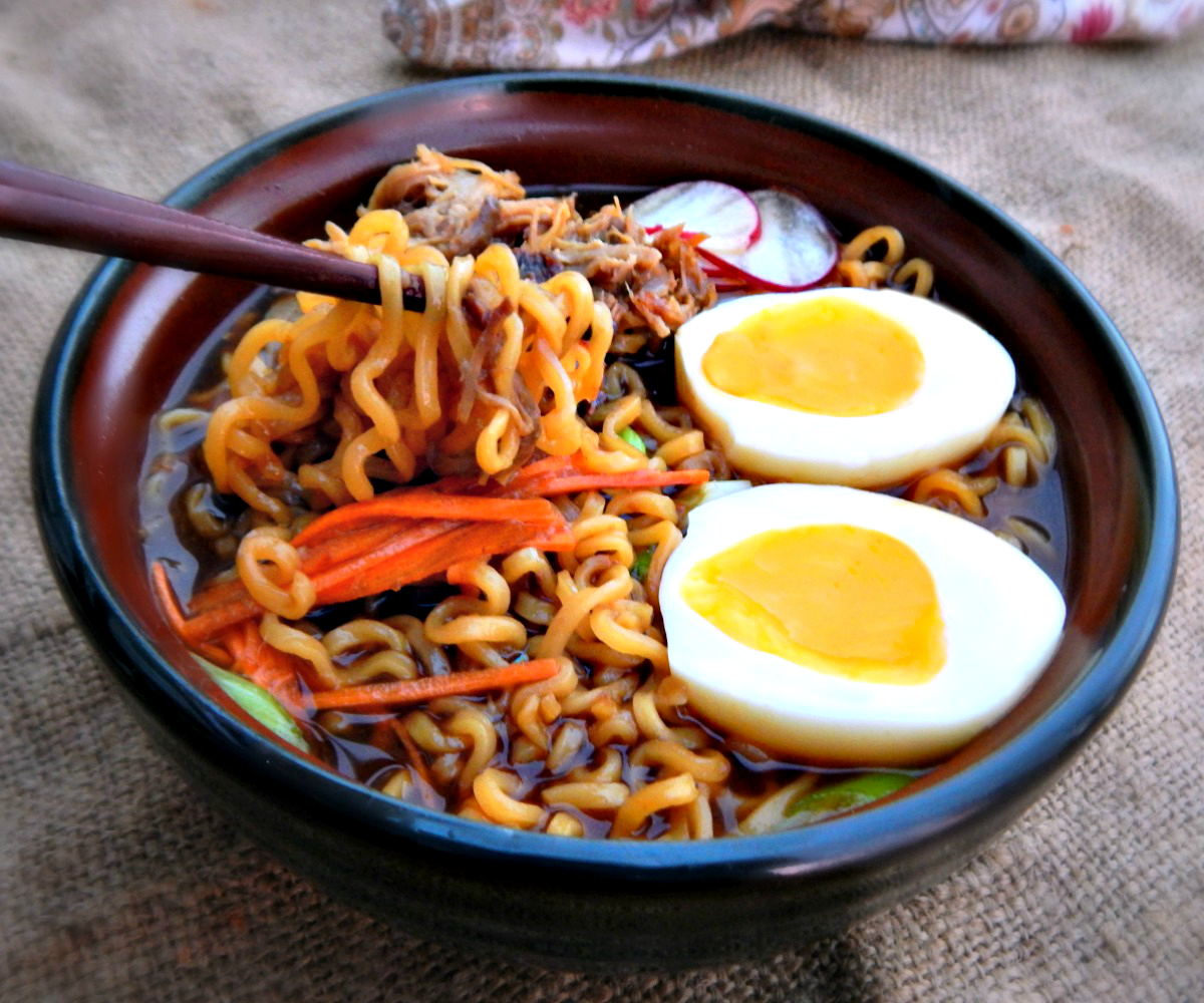 If you’ve been following along (Do I sound like a teacher? Class?) you’ve probably seen my most marvelous recipe for Vaguely Vietnamese Slow Cooker Pork Tacos last week. If you haven’t, take a peek, because that recipe is the starter for this Shortcut Pork Ramen. And as good as those tacos were, this spin-off recipe is even better.