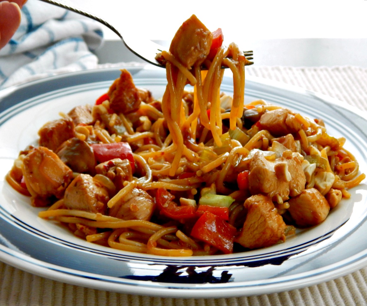 There’s some things that just go together. Salt & pepper, peanut butter & jelly. Chocolate and caramel. And now: Kung Pao Chicken with Noodles.
