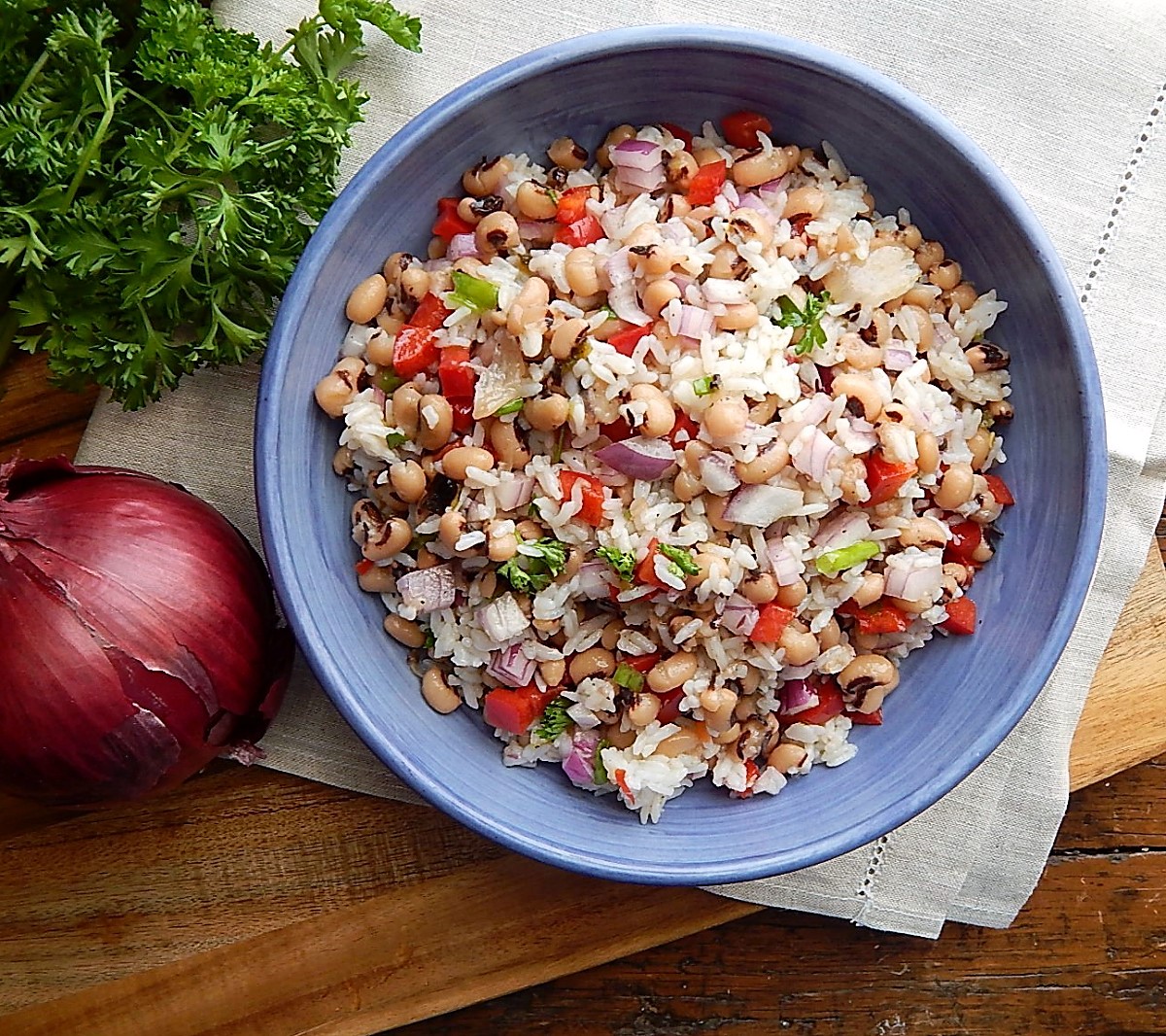 Budget shop for the ingredients. Black-Eyed Peas, canned, are about three times the price of dried, but still so cheap they won’t break the bank. Rice, too, is a budget item. Look for it in bags on the bottom shelves and peek around in the Mexican, Indian and Asian areas of your store.