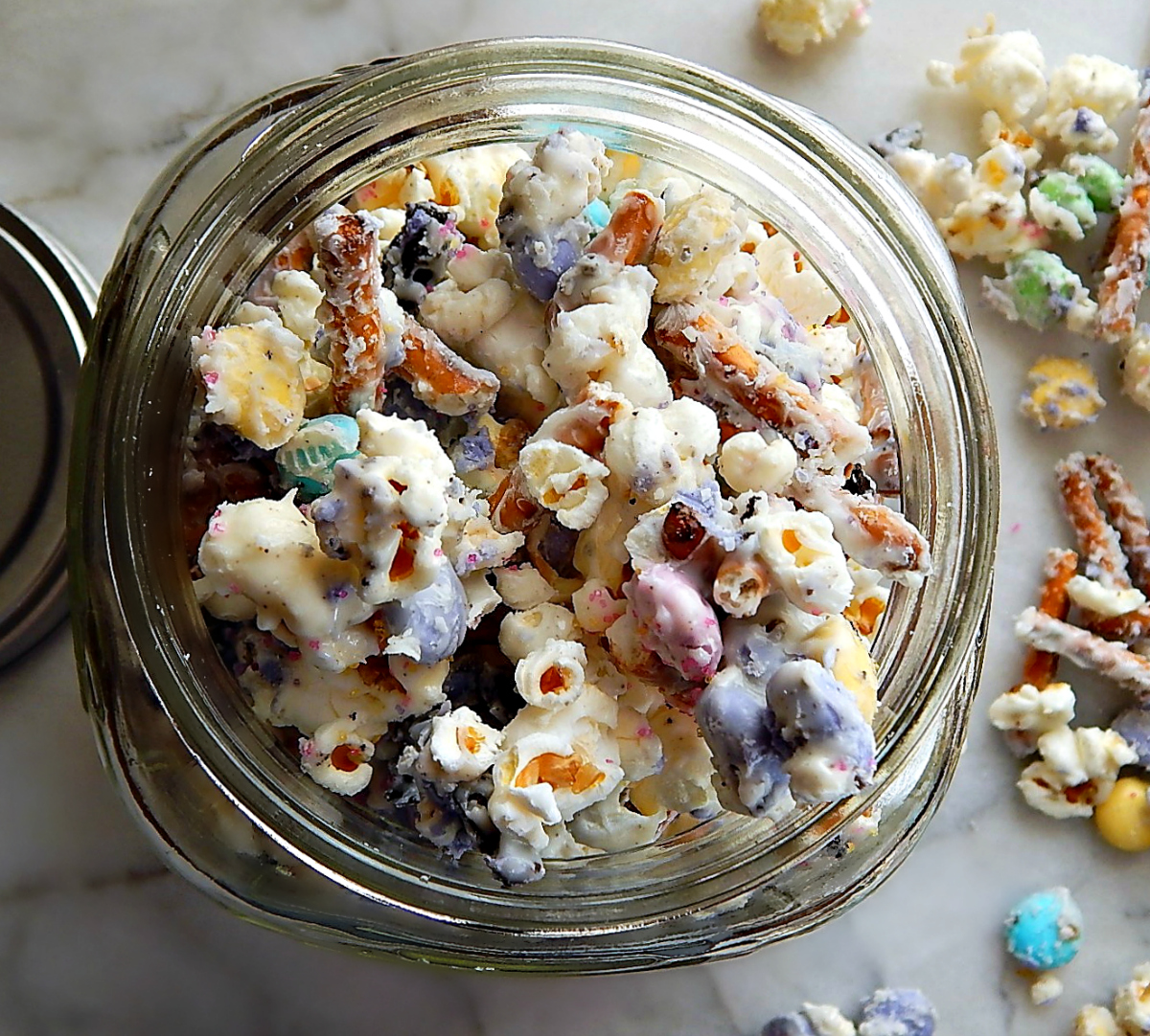 About Peeps Oreo White Chocolate Pretzel Bunny Bait Popcorn: