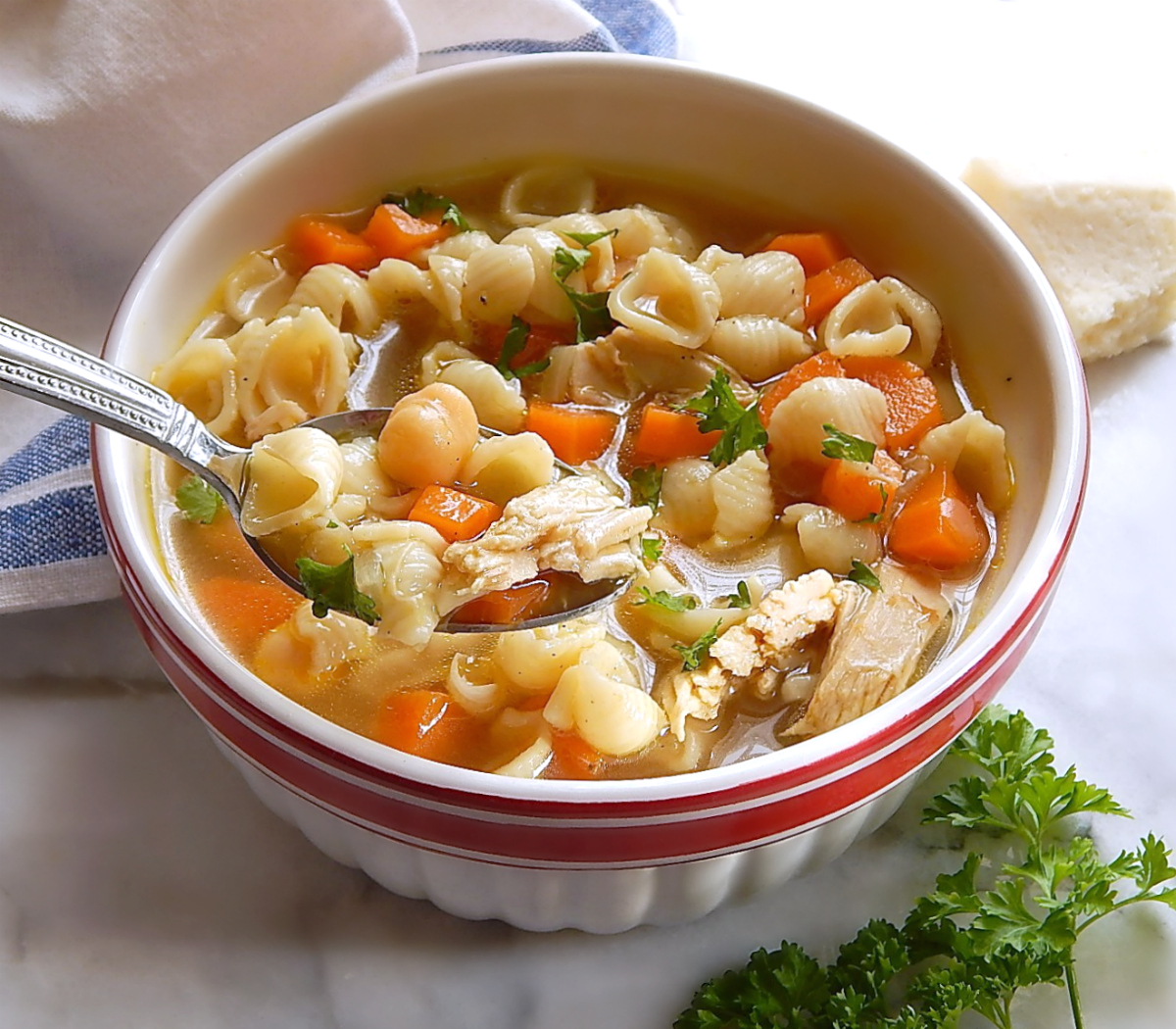 About Chicken, Chickpea & Orecchiette Pasta Soup: