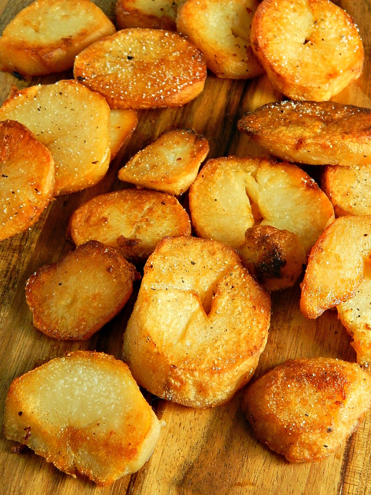 - 5 – 6 medium-sized russets, peeled, cut into 3 to 3 1/2-inch chunks