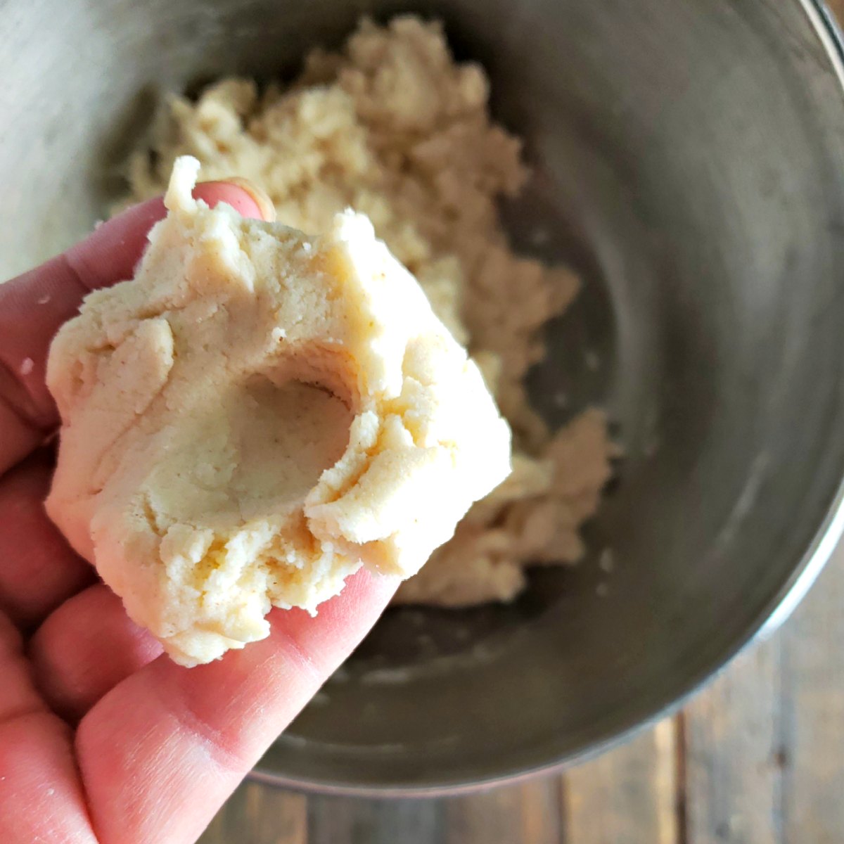 When finished, it should be nice and squishy, but not sticky (if it is, add a little more Masarepa) and not crack (if it does, add a touch of water) when formed into a ball and squished into a cake. You can test a bit of it just by picking up a piece and manipulating it. I find when it’s dry outside, I need about an extra tablespoon of water, and when it’s humid, it’s just fine as is. That might vary a bit for you, and you really have to go by feel.