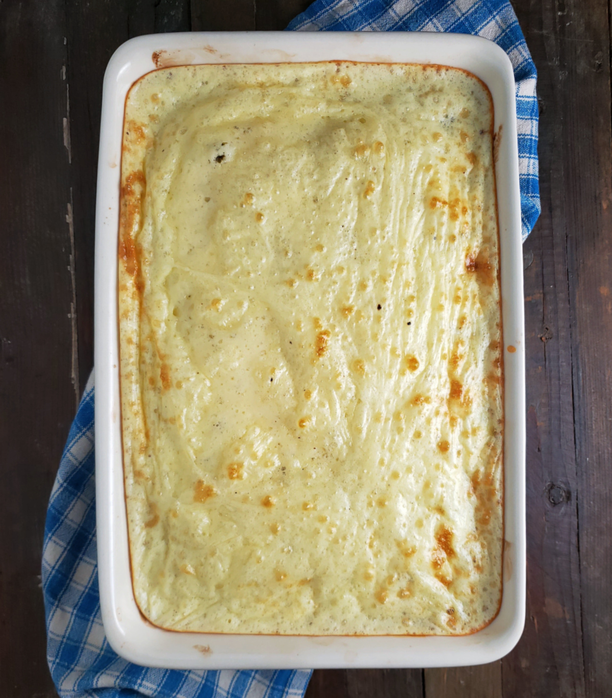 Bulgarian Moussaka, like the Greek version, also has a custardy topping, indisputedly the best part! (Don’t fact-check me on that; I have no stats to prove it’s the best!) I’m just sayin’. This particular version is made with yogurt, which gives it a little tang and is super easy to make.