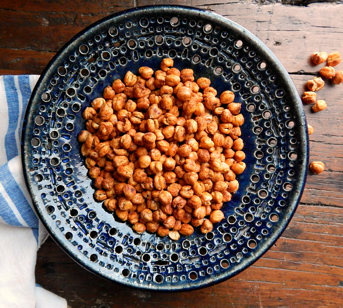 Roasted chickpeas start out with cooked chickpeas, so leftover chickpeas are a great way to start. Here’s a favorite recipe for Crispy Oven Roasted Chickpeas.